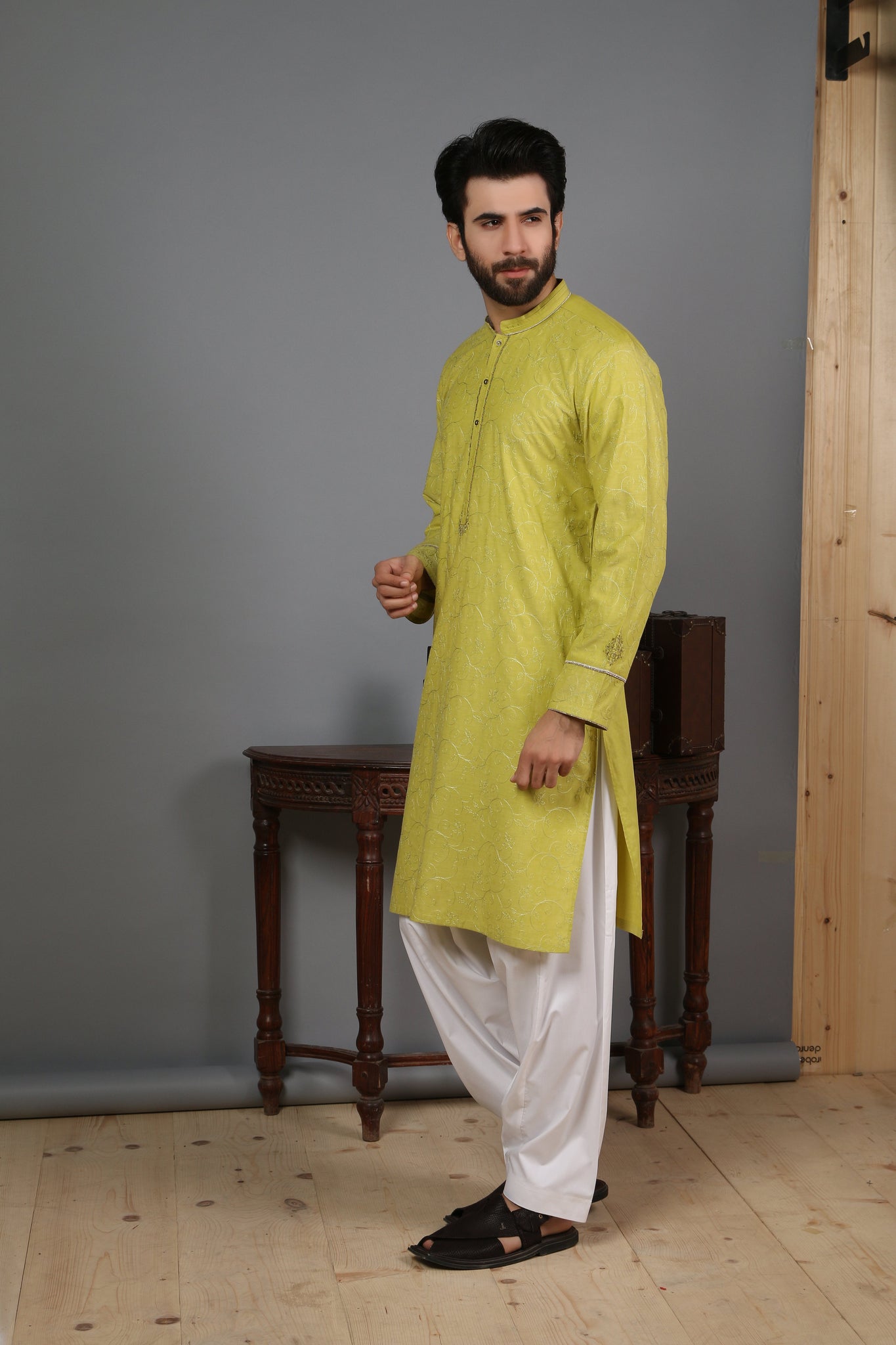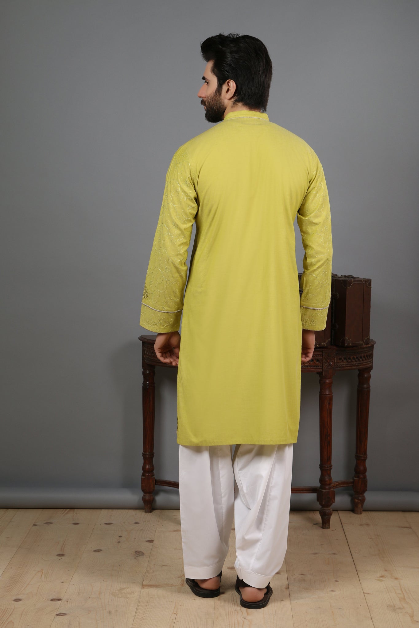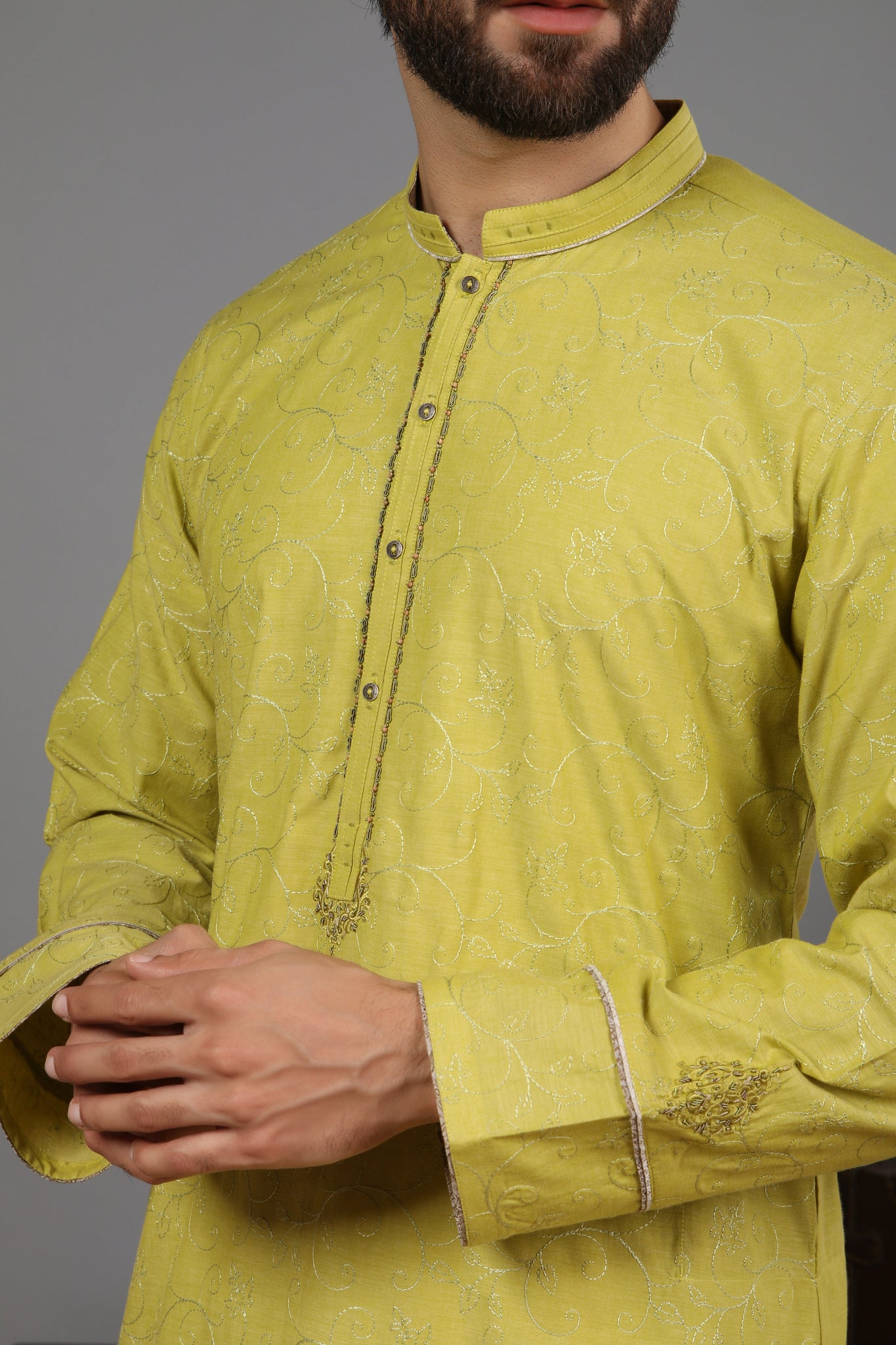 SlimFit kurta only. Cotton fabric with embroidery on it. Color may slightly vary from the pictures.