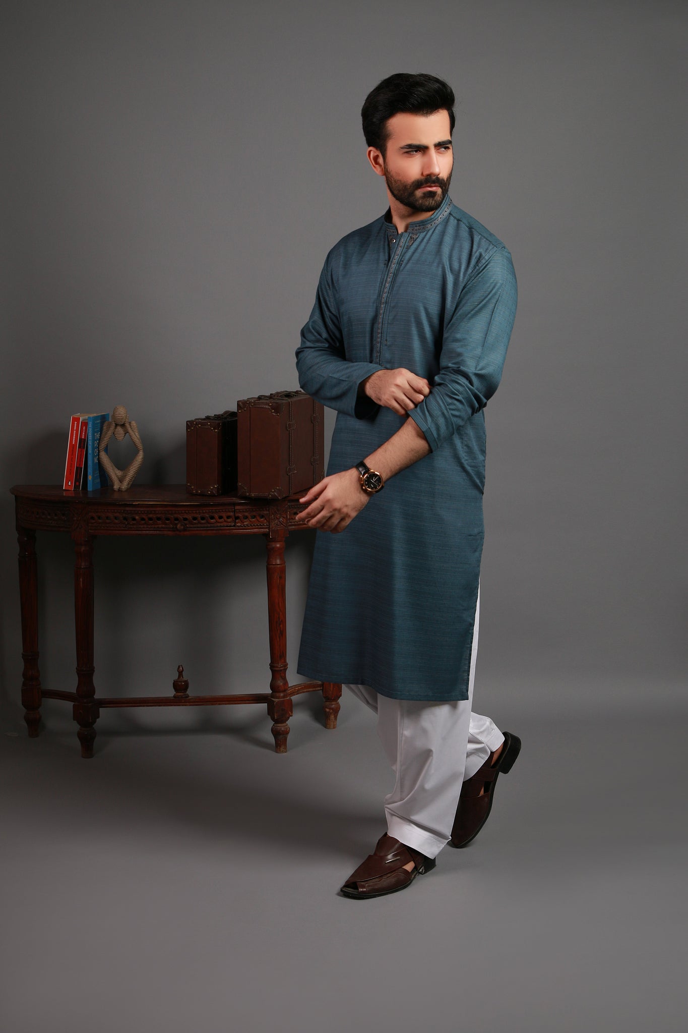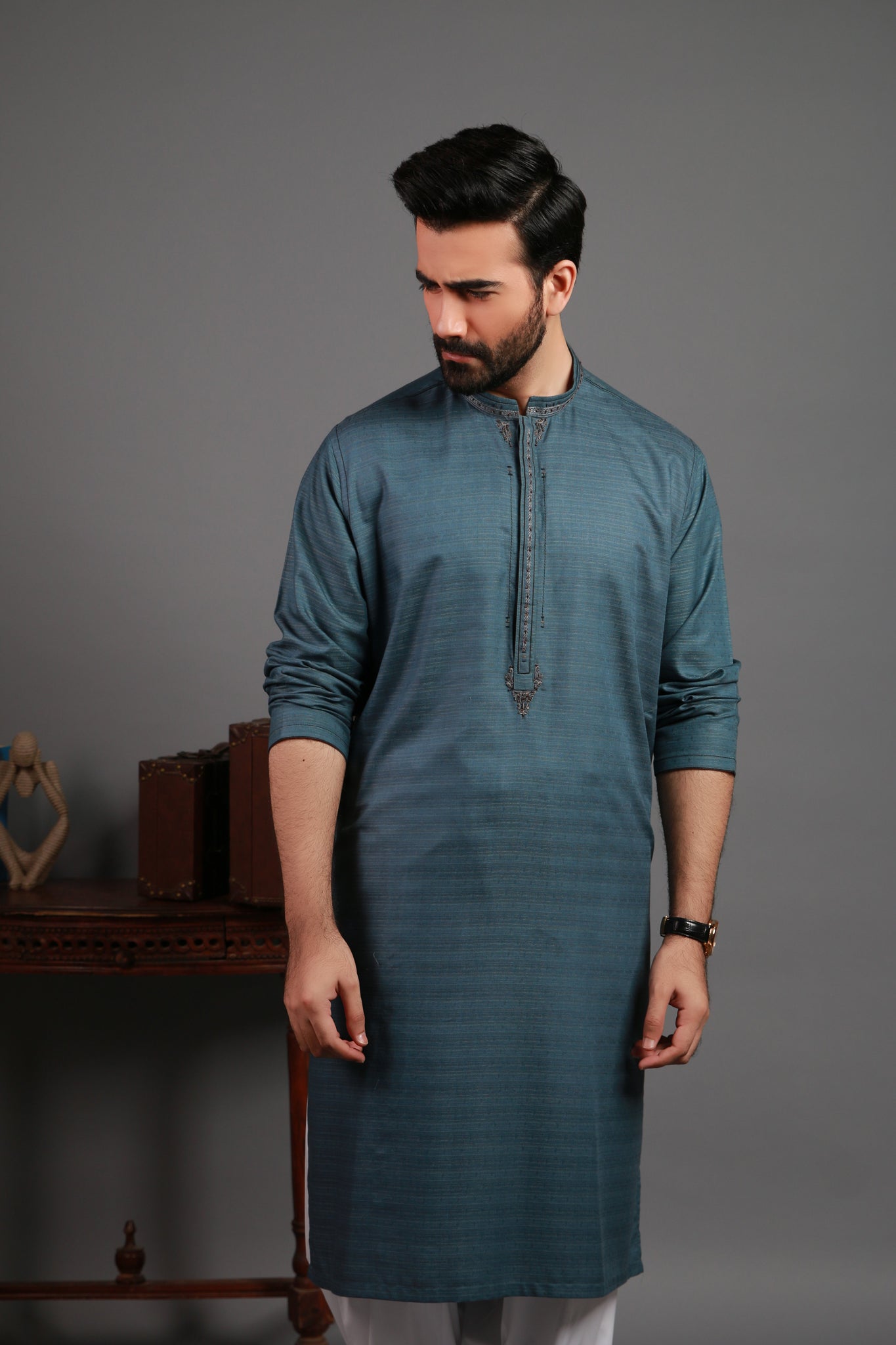 SlimFit kurta only. Cotton mix soft fabric textured with embroidery on it.