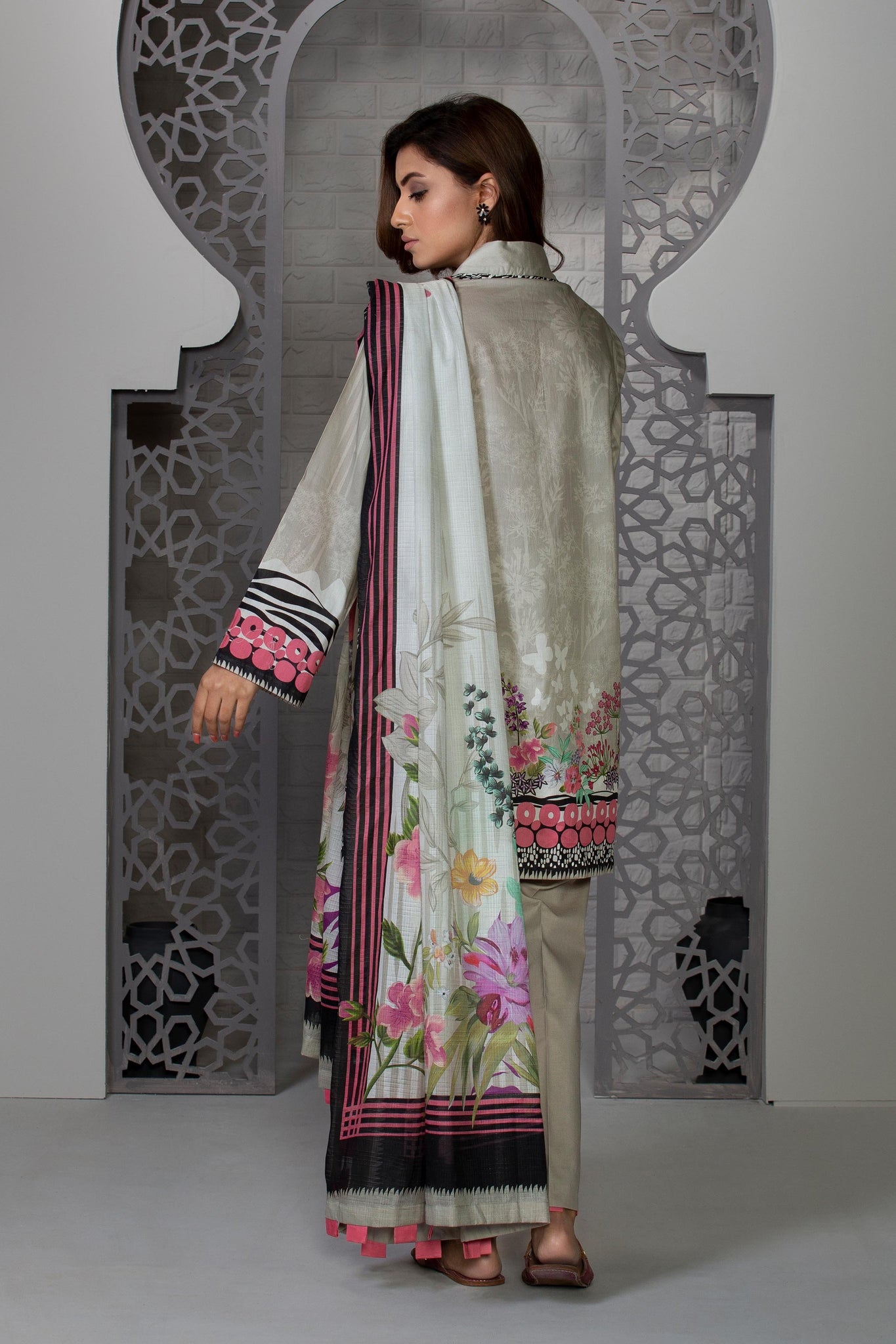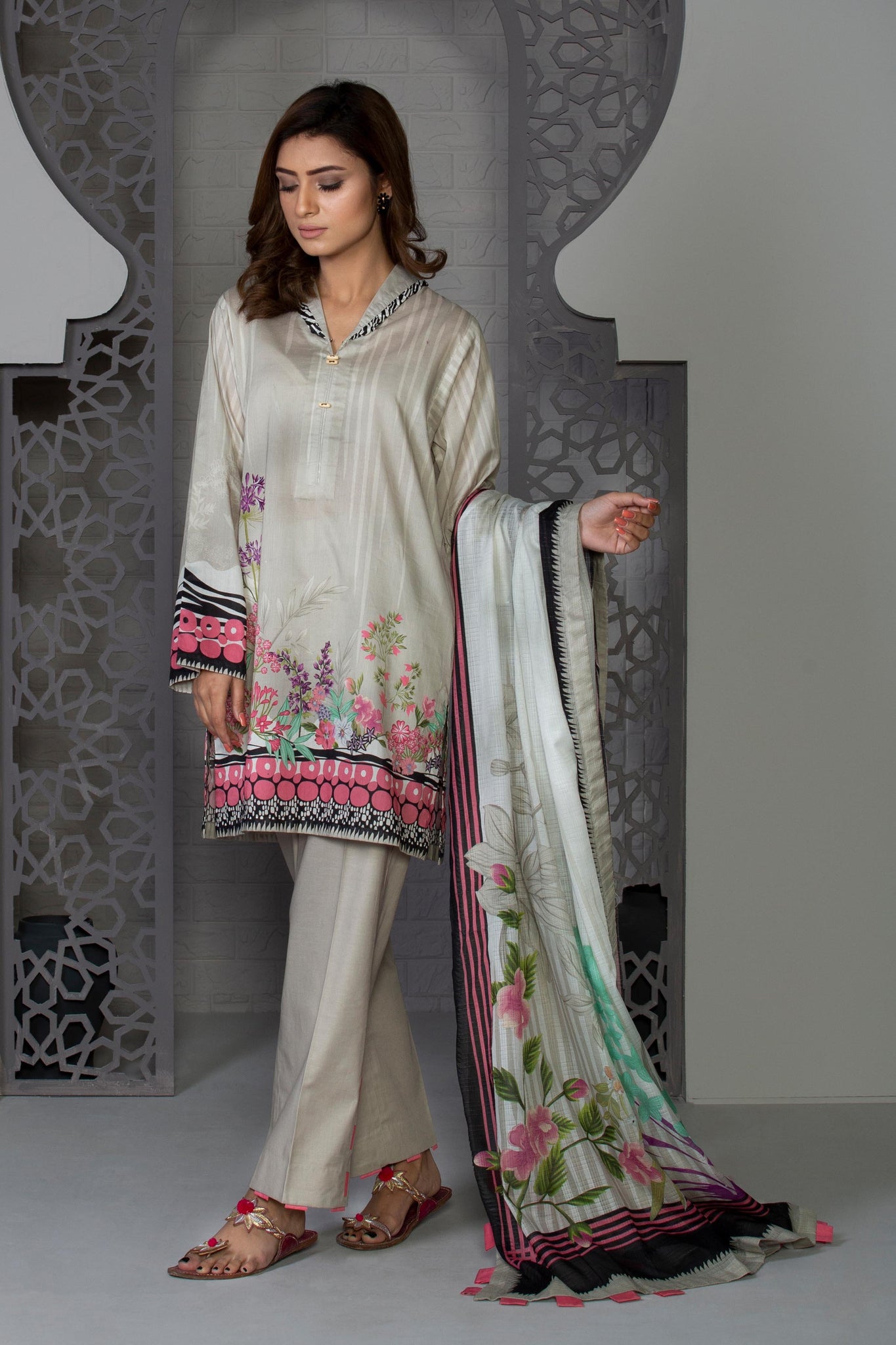 Basic printed suit with Lawn dupatta. The V neck is different than the pictures. No tassels on shirt, dupatta or trouser. Plain dyed bottom and Printed shirt. Shirt Length is 38".