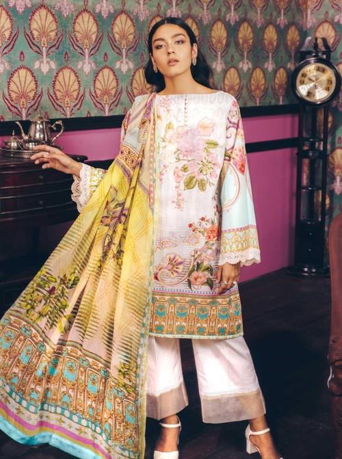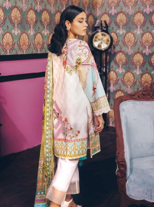 Printed ShirtDyed PantsPrinted Chiffon DupattaEmbroidered Neckline Embroidered Pants Motifs