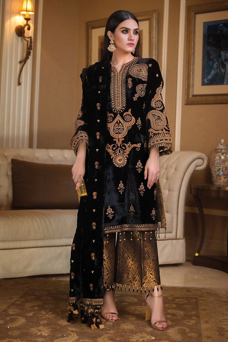 3 Piece Stitched Hand Embroidered Velvet VLW # 14
